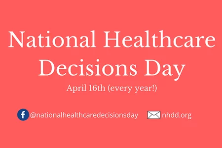 Today, April 16th, is National Heathcare Decision Day! We encourage everyone to give this some thought. Think about what your wishes would be if you were in the hospital and could not speak for yourself. Think about who you would want to be your advocate, who can handle talking to the medical staff and make decisions about your care. Then take the time to document those wishes and have a good talk with your family about what those wishes mean to you and to them.